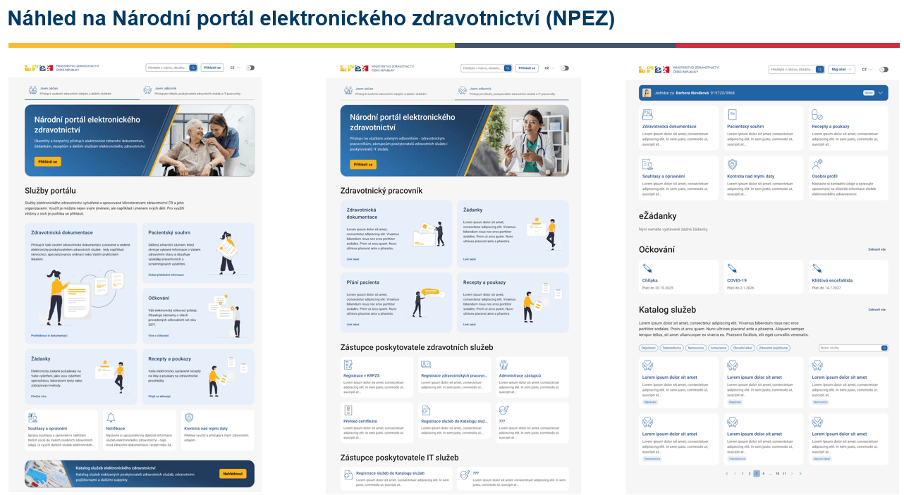 Třetím produktem je klasická webová stránka Národní portál elektronického zdravotnictví. Na ni se jako pacient přihlásíte zcela stejně jako na portál občana prostřednictvím NIA ID nebo přes bankovní identitu a uvidíte zde po spuštění například své základní osobní údaje, výhledově propouštěcí zprávu z nemocnice, žádanku ke specializačnímu vyšetření. Jestliže se na stránku přihlásí lékař, uvidí trochu jiné informace, a to informace o sobě jako poskytovateli zdravotní péče, místo zaměstnání nebo jestli je registrovaným lékařem. Tato platforma vznikne 1. ledna 2026, ale zatím jen jako prázdný produkt a postupně se začne plnit daty. Tento produkt tak bude atraktivní až za rok za dva, než se zapojí jednotlivé nemocnice a ambulance.