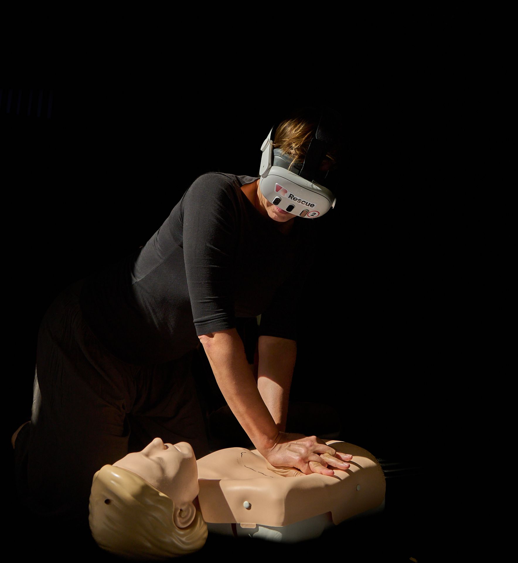 Pak už můžete přistoupit k nevědomému. Lektoři vysvětlují, jak vyzkoušet, jestli osoba jen nespí, a poučí vás, jak k osobě přistupovat, abyste opět neohrozili sami sebe. Pak už přecházíme rovnou ke zjišťování správnosti dechu a v případě potřeby k samotné resuscitaci. Ke správnému nácviku máte k dispozici figuríny. V čem je nácvik jiný ve virtuální realitě?