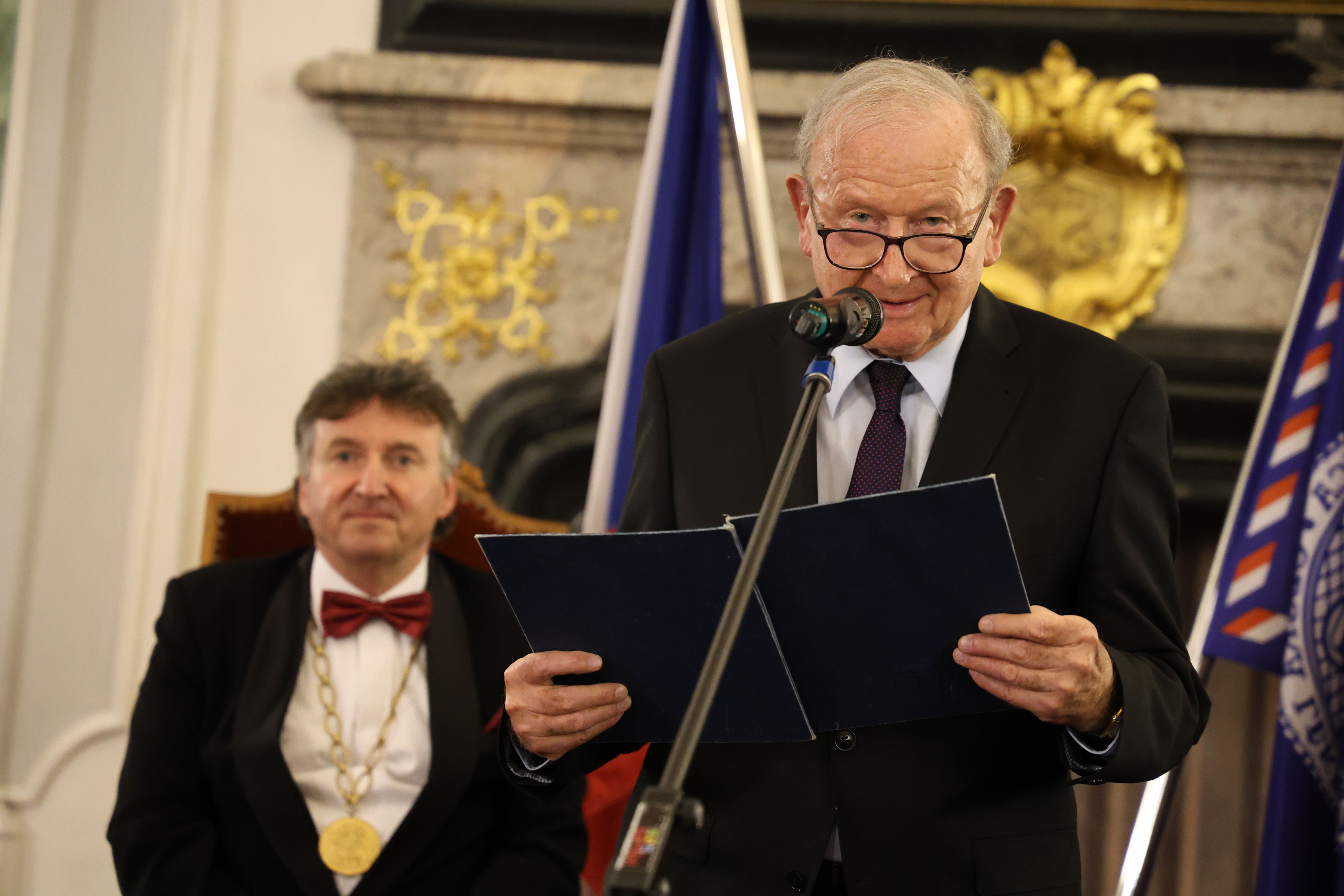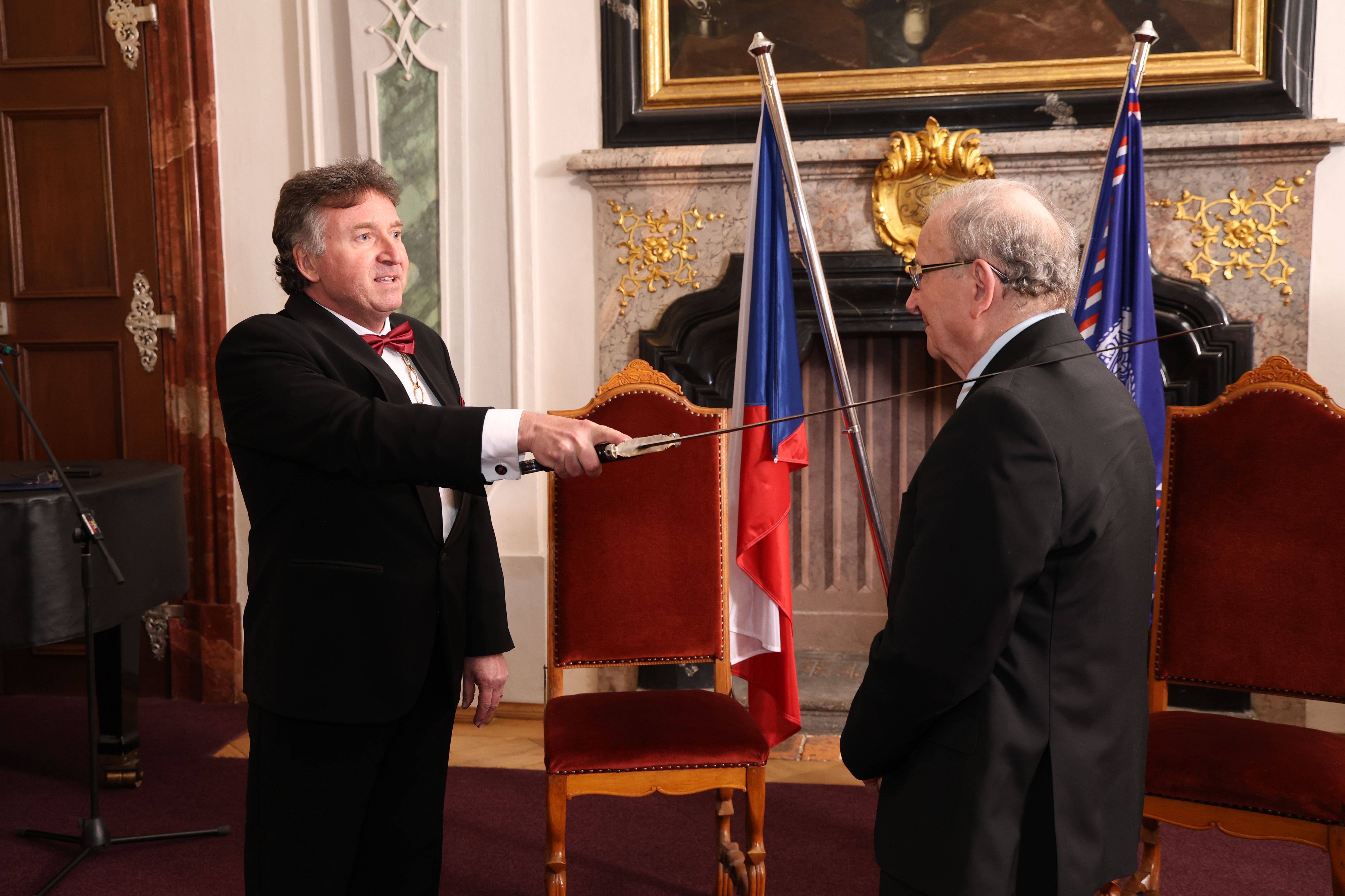 Lékař, cestovatel, spisovatel a pedagog doc. MUDr. Petr Bartůněk byl pasován Rytířem lékařského stavu
