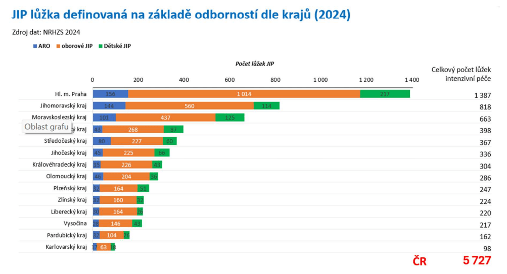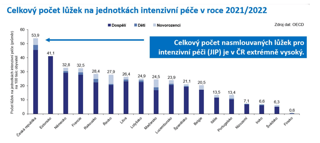 V České republice máme téměř 6000 lůžek intenzivní péče (IP). Odpovídá to zhruba 40 lůžkům na 100 000 obyvatel. Možnost porovnání počtu lůžek s ostatními zeměmi je trochu omezená, jelikož názvosloví a obsah jednotlivých typů péče se do jisté míry liší třeba od anglosaské oblasti. Statistiky nicméně ukazují, že průměr v členských zemích Organizace pro hospodářskou spolupráci a rozvoj (OECD) činí zhruba 16,9 lůžka na 100 000 obyvatel a evropský průměr je kolem 11 až 12 lůžek.