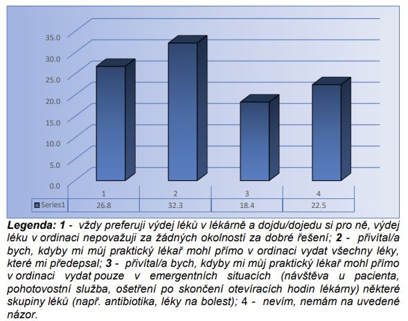 Průzkum se věnoval také otázce, kde si pacienti přejí vyzvedávat předepsané léky. Celkem 26,8 % respondentů uvedlo, že si chtějí léky vždy vyzvedávat v lékárně. Naopak 32,3 % by přivítalo možnost převzít léky přímo v ordinaci praktického lékaře a 18,4 %, kdyby lékař vydával léky jen v emergentních situacích. MUDr. Petr Šonka situaci ilustroval konkrétním příkladem ze své praxe: „Já sám mám ordinaci v Přešticích, což je malé město, které má 7 000 obyvatel. Máme tam tři lékárny, ale když mám ordinační dobu do 18, tak všechny lékárny končí v 17. To znamená, pokud vám přijde někdo s angínou mezi 17. a 18. hodinou, musíte mu předepsat recept a ten pacient pak jede 25 km do Plzně, aby si vyzvedl antibiotika.“