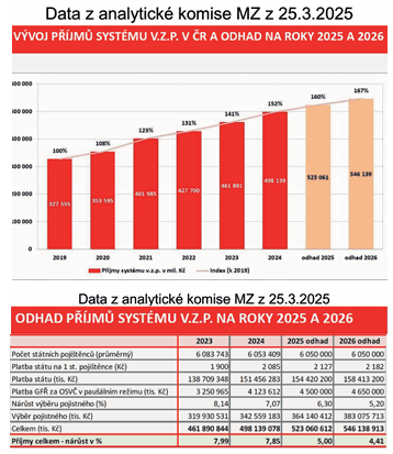 Zdravotní pojišťovny měly k 31. 12. 2024 zůstatky ve výši 47,7 mld. Kč a k 31. 12. 2025 se očekávají zůstatky ve výši 41,7 mld. Kč.“
