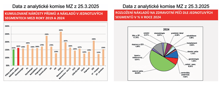 12) Z dat analytické komise z března 2025 je zřejmé, že segment ambulantní gynekologie rostl v období 2019–2024 podprůměrně (viz přiložené tabulky).